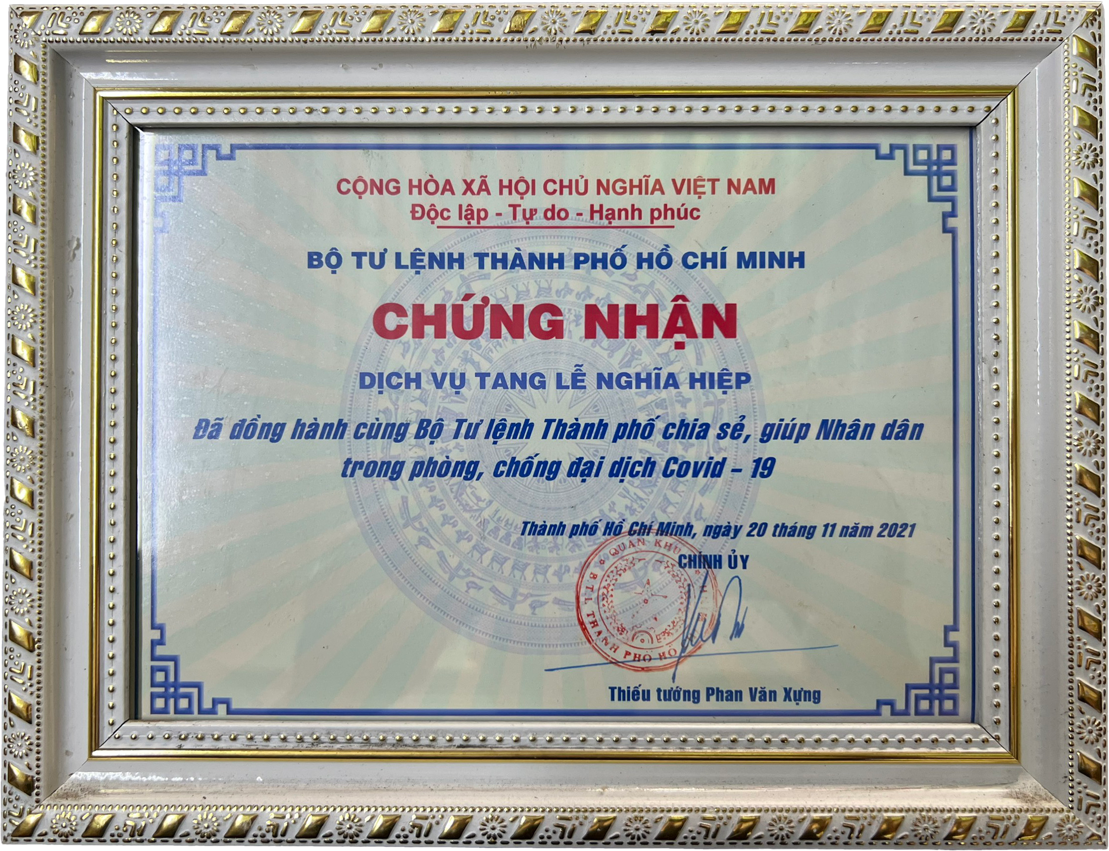 Với hơn 100 năm truyền thống phục vụ, Tang lễ Nghĩa Hiệp Đạt Nguyễn là đơn vị uy tín lâu đời trong lĩnh vực tổ chức tang lễ trọn gói. Chúng tôi tự hào được trao tặng nhiều bằng khen ghi nhận kinh nghiệm và sự tận tâm trong từng nghi lễ tiễn đưa.